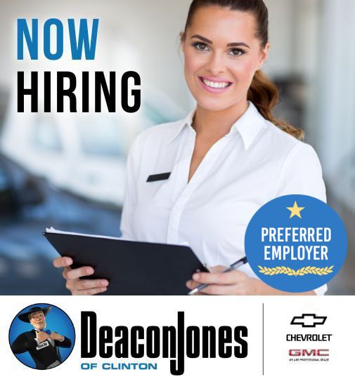 At Deacon Jones Chevrolet GMC of Clinton sales are booming, and we are hiring now for Sales Consultants to keep up with consumer demand for new and used vehicles! Do you want to start a career where your efforts are appreciated and rewarded? We train the right candidates for the exciting field of auto sales!